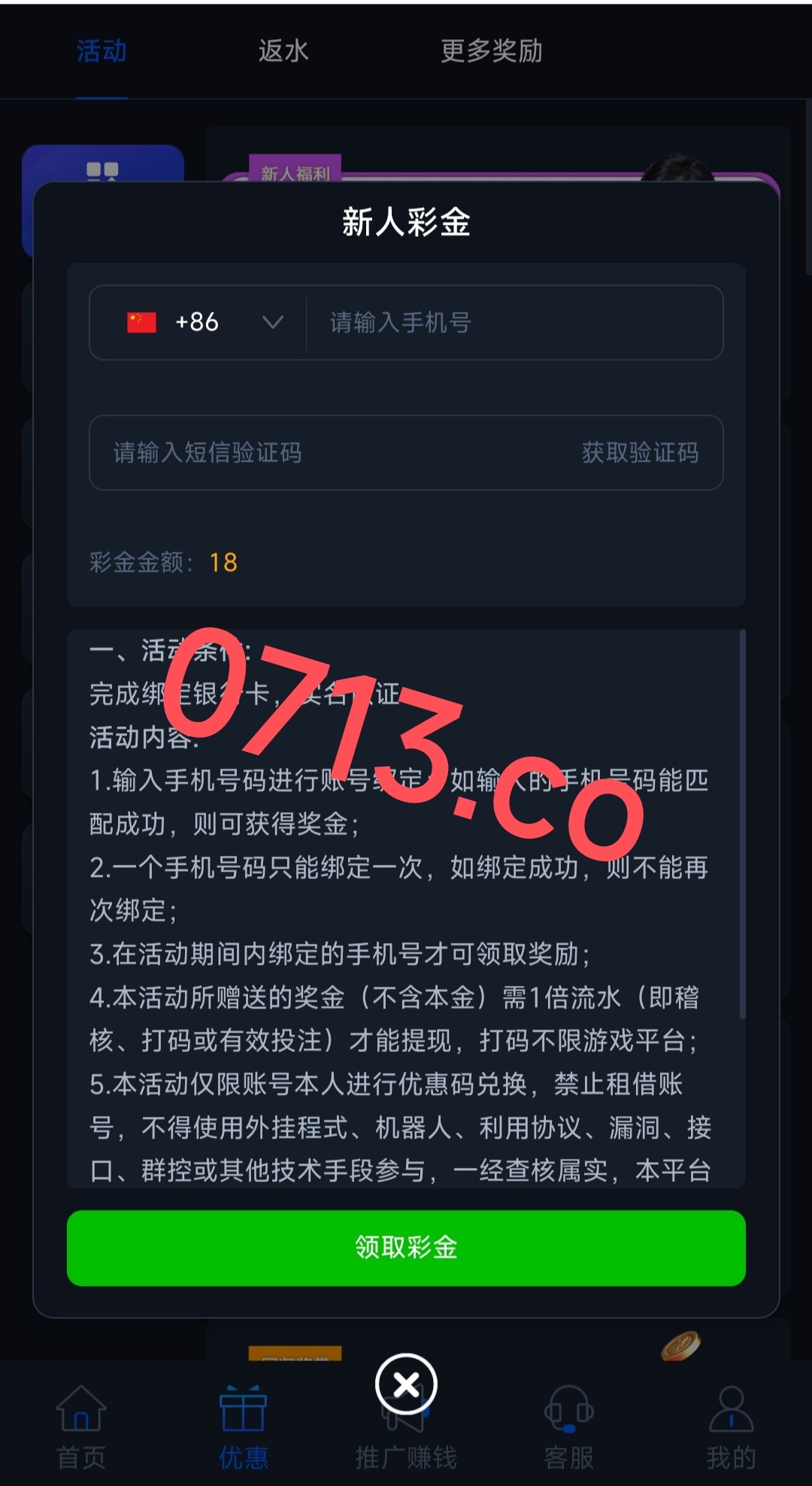 注册绑定手机号和银行卡再去领18!