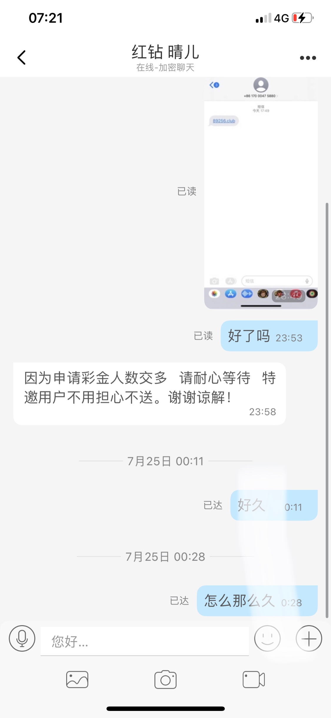 新用户注册绑卡 联系客服申请特邀彩金 下方有短信图 不提供可能会送