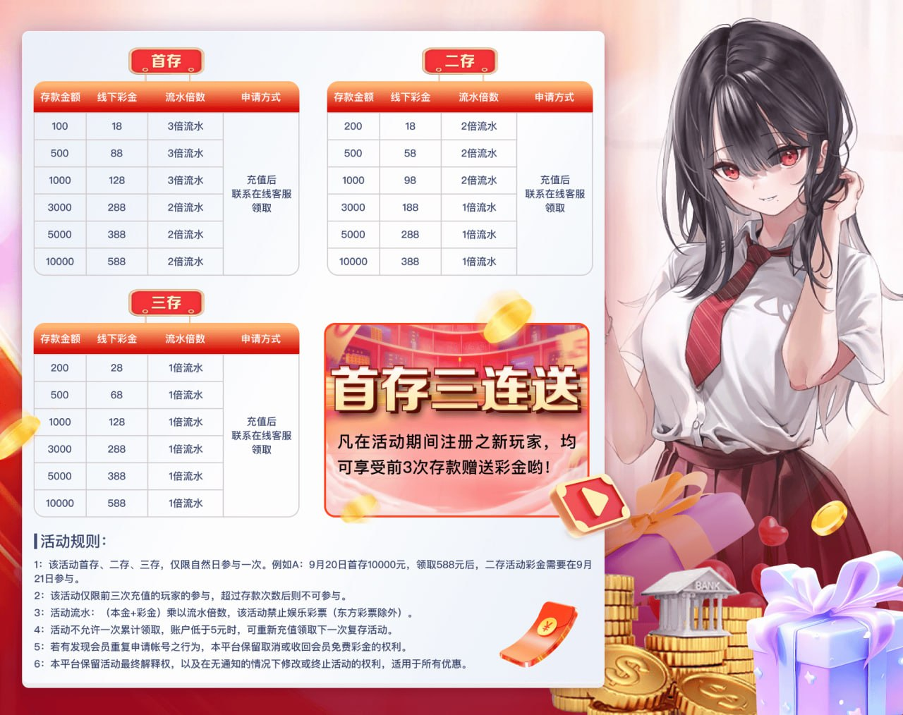 三存可获得彩金奖励具体金额为