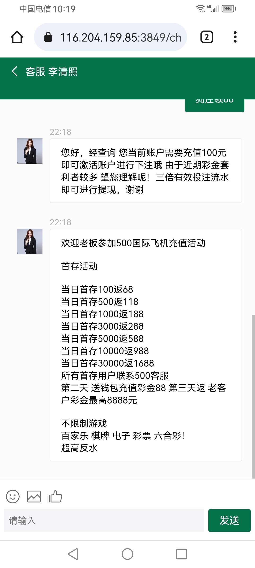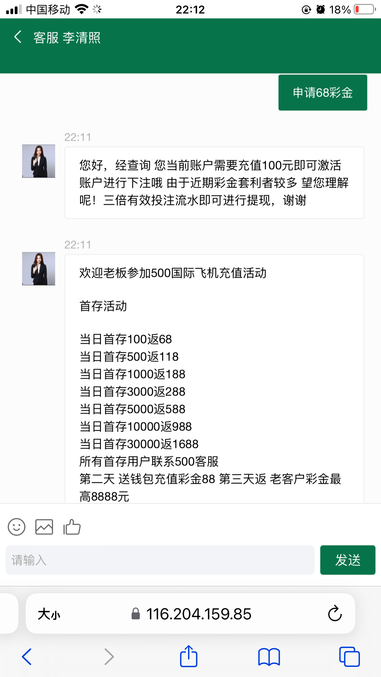 不用去了,送68啥不能玩锁了游戏下注,只能看,要充值100联系客服,这种大概率是黑台子千万不要充值