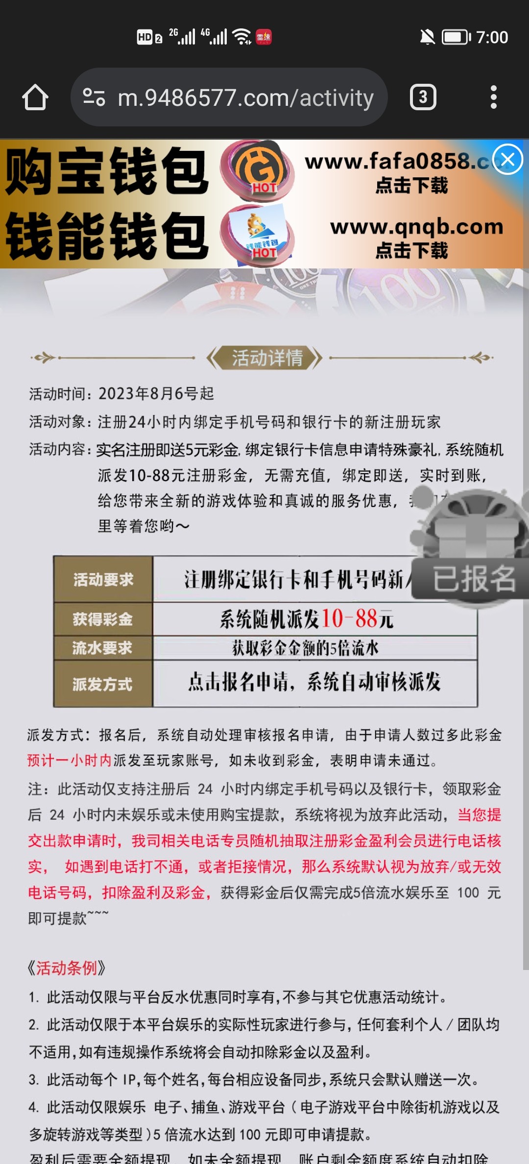 注册绑卡优惠里自助领取彩金,满100走钱包提。