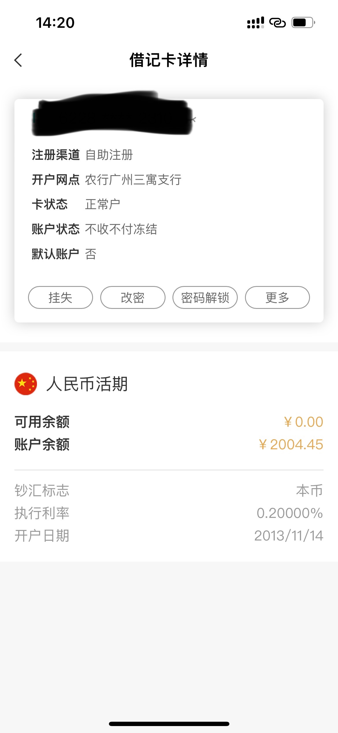我的农行也不收不付冻结快3年了,也没自动解