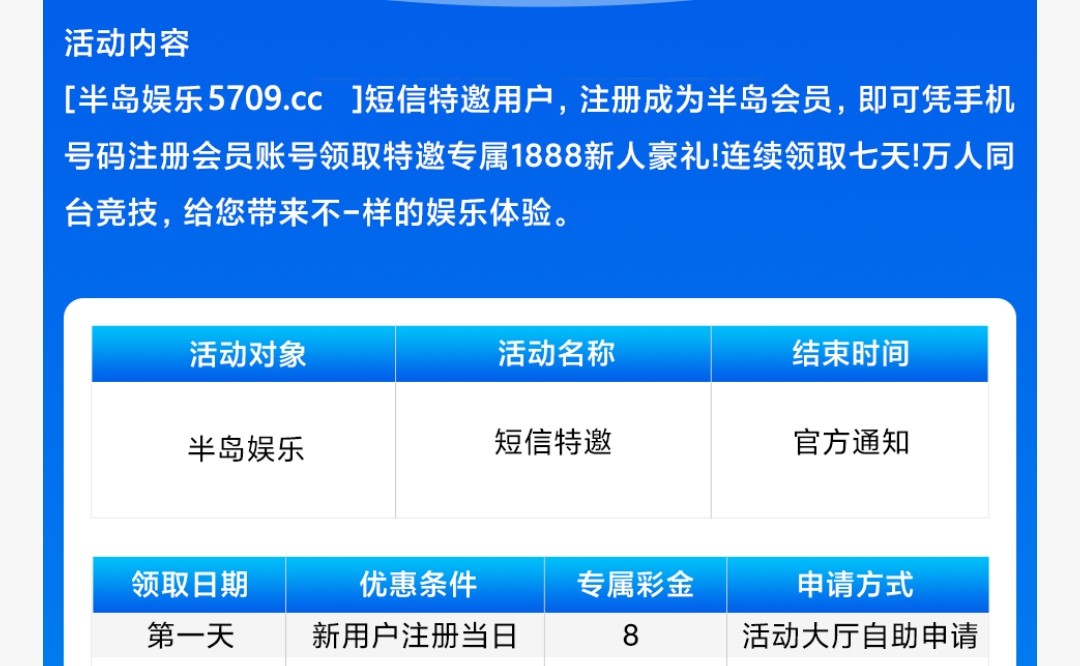 碰瓷短信特邀,注册绑定银行卡去优惠大厅自助申请送8彩金,具体优惠限制自行查看!