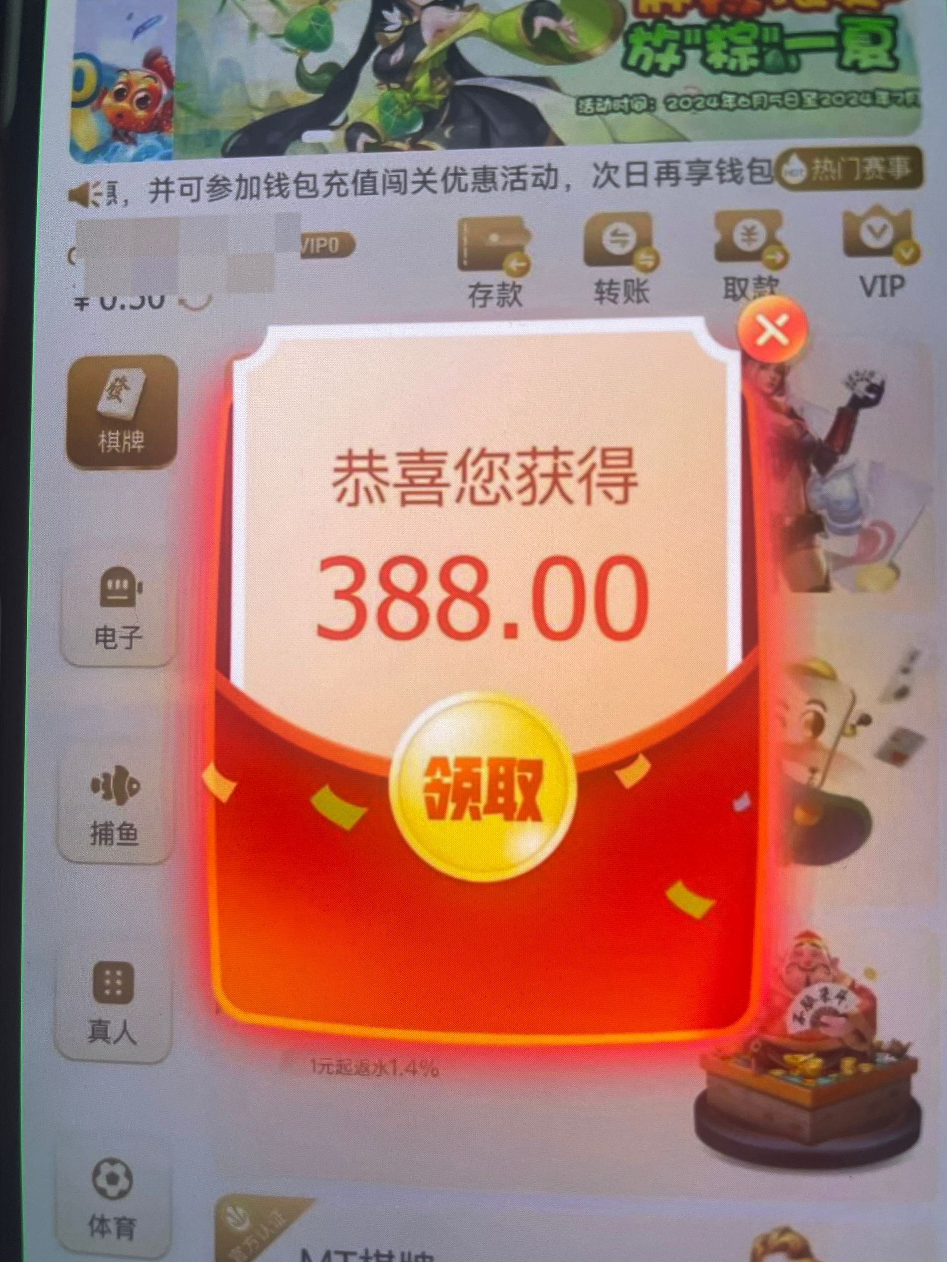 没充值,部分老号回馈388一倍流水提有号的登入上去看看,有的话自动弹红包出来!