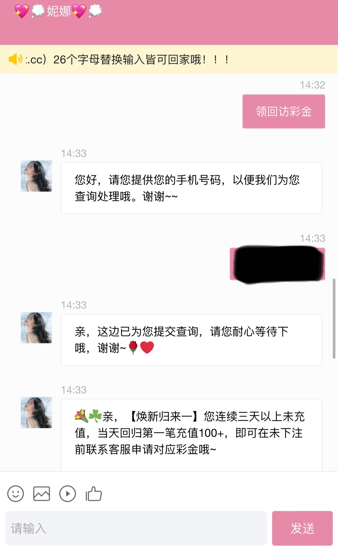碰瓷回访彩金,联系在线客服领发手机号给客服查,没玩过的也可以先注册不要绑卡等回访