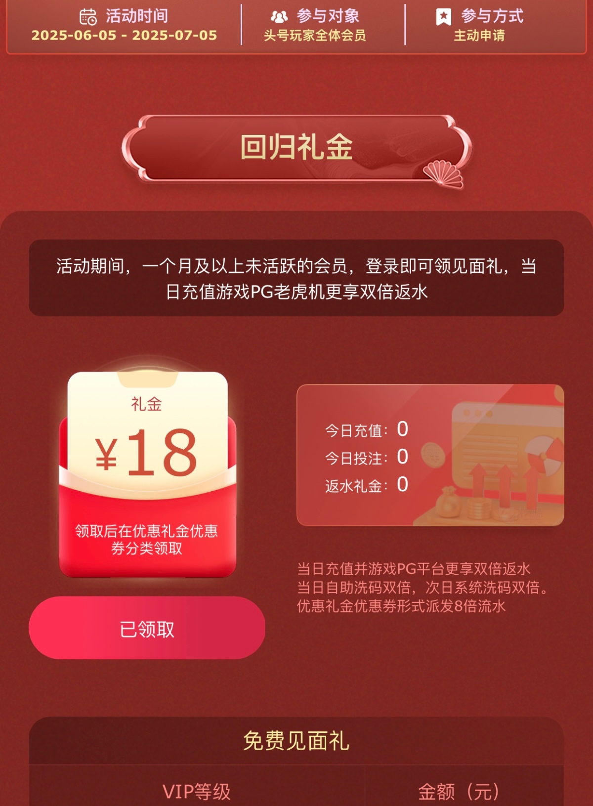 久不登入的兄弟可以上号领一下回归礼金