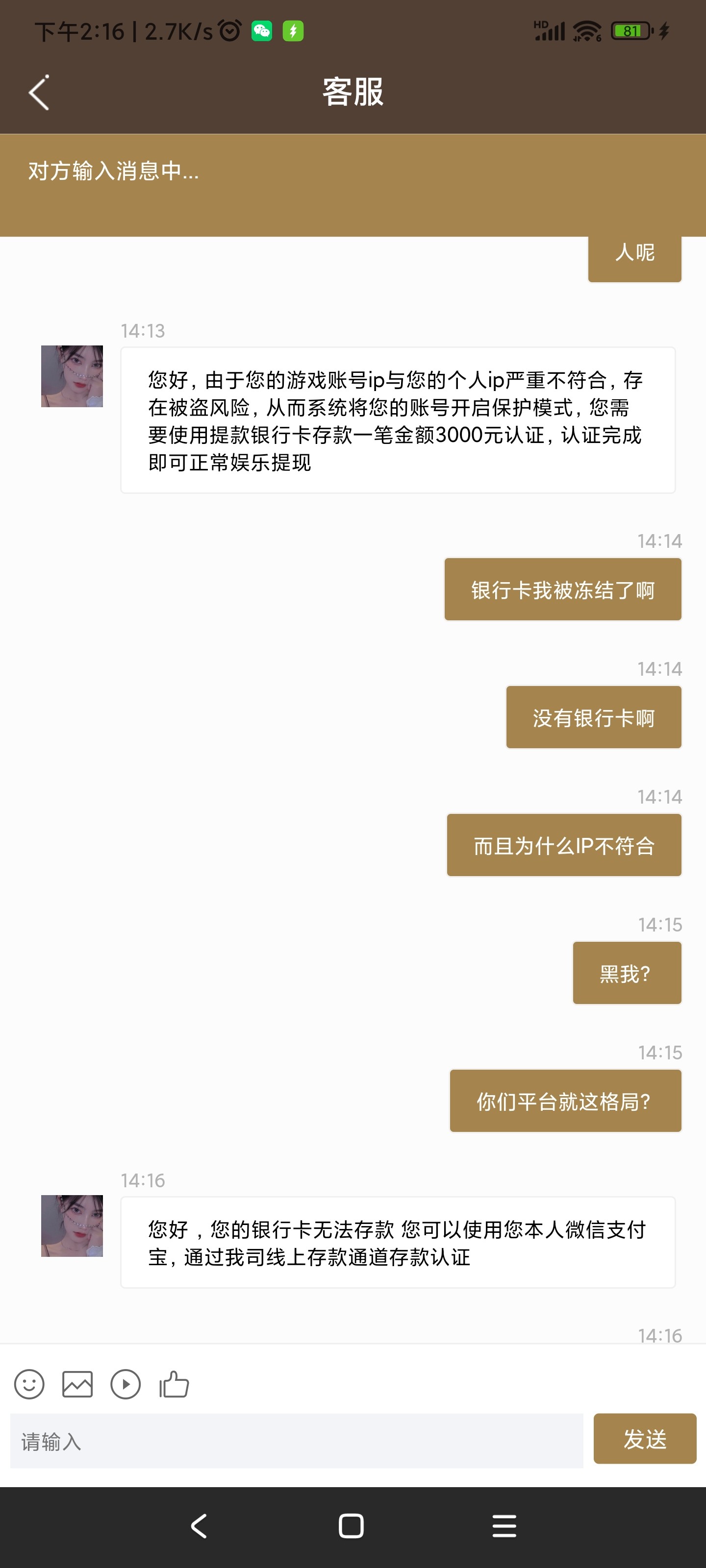应该是你赢得太多了,平台玩不起了