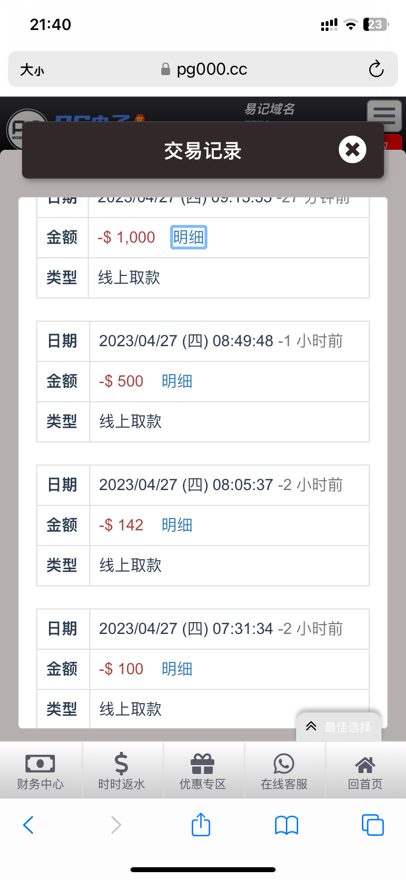 之前的反水 领了17块前两次100一次500的都是五六分钟到这个1000块 半个小时了还没到 还能到账吗