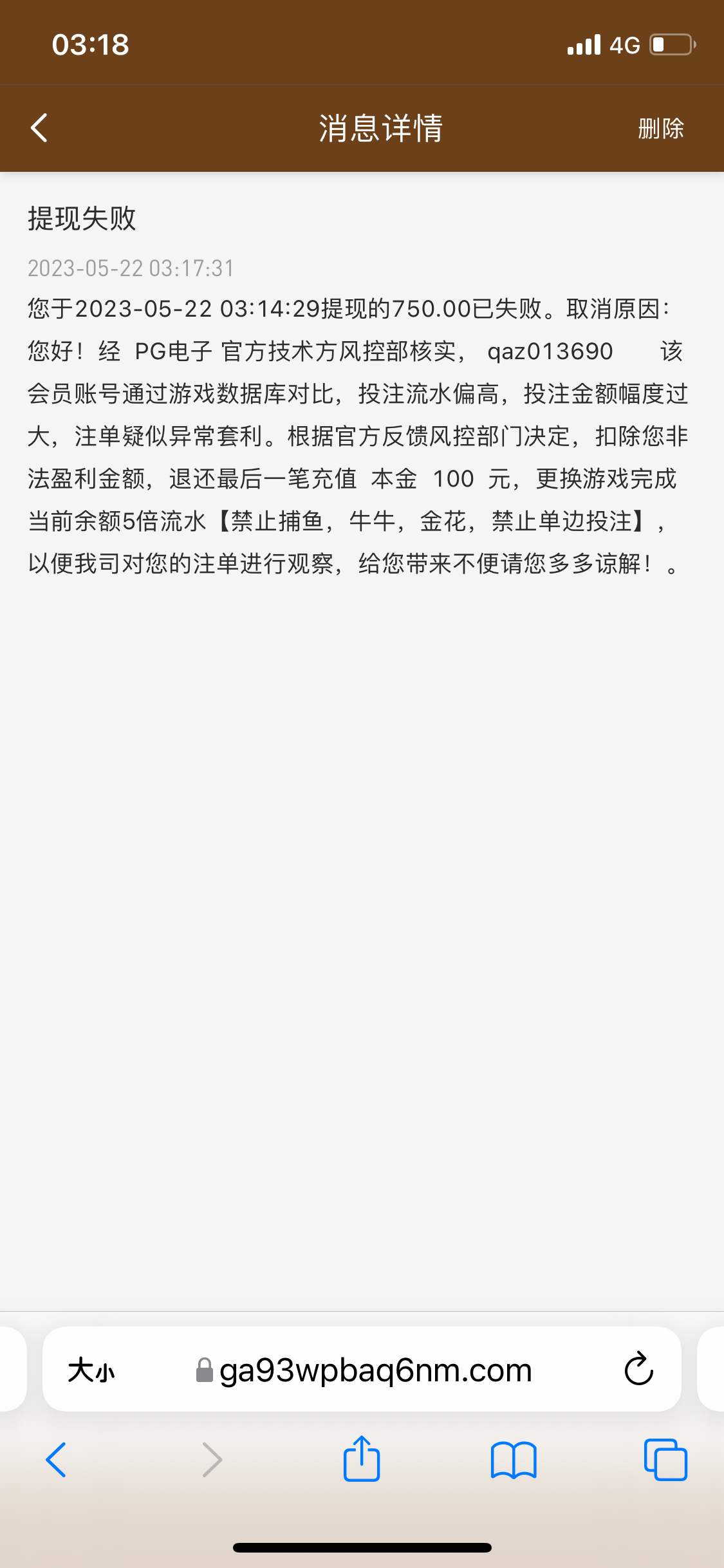 充值100,电子上到700被黑,金额全部扣完