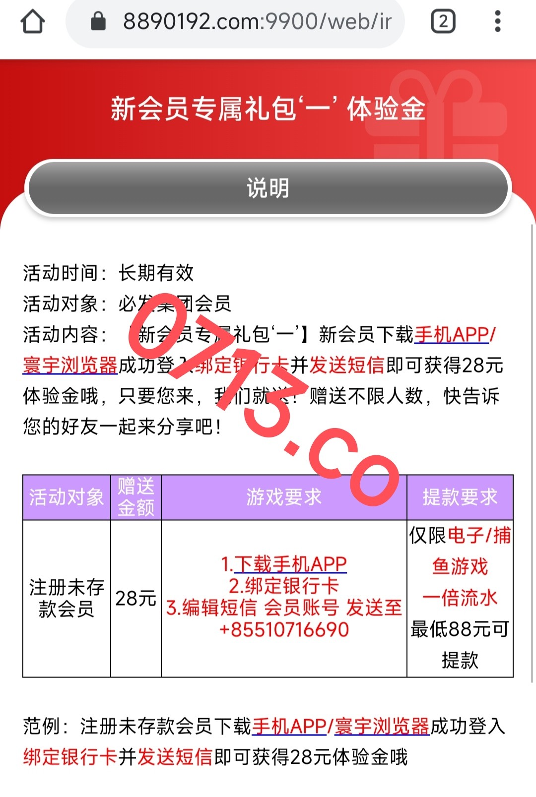 注册绑卡到活动中心找到新用户送28元,按活动发送短信,再到优惠中心申请新用户28元,老用户也可以试一下
