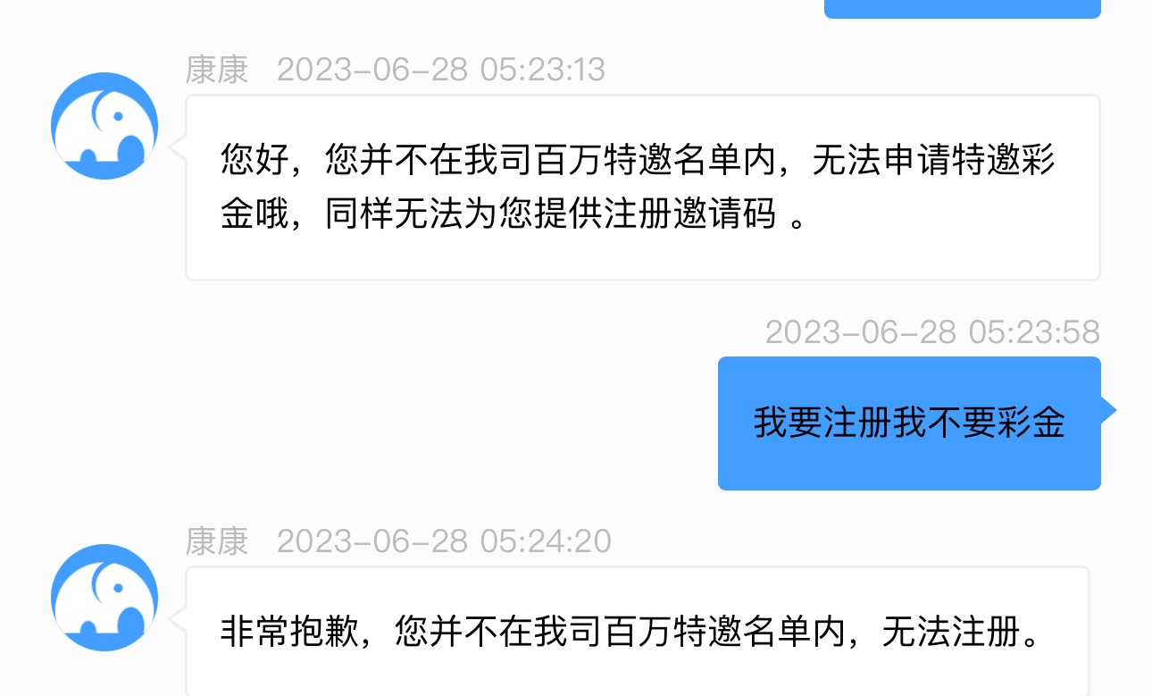 去找客服,说要注册等客服回发手机号码给他就行了